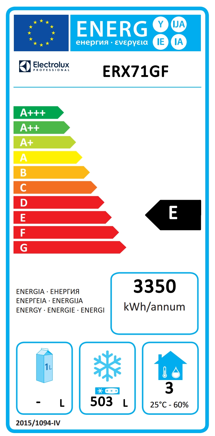 • Classe energetica (in riferimento al Regolamento UE 2015/1094): E